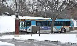 As of December 2019, thirty-six bus routes comprise the TCAT system.[11] Routes are identified by number and are usually indicated on a marquee at the front of the bus, and sometimes on the side as well. TCAT's main hub is Green Street Station, off of the Commons, a two-block pedestrian mall in downtown Ithaca. Most non South Hill routes run through the Cornell University campus; East Avenue and Tower Road near Uris and Statler Halls is considered a secondary hub.[12]