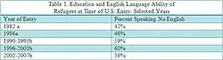 According to Table 2, 58 percent of the incoming refugees could not speak English. This indicates that there is a great need for English language training among the refugees.