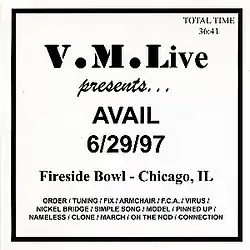 V.M. Live Presents...Avail is a live album by Avail. It was recorded at the Fireside Bowl in Chicago, on 29 June 1997, less than two weeks after the recording of Live at the Bottom of the Hill in San Francisco. The album was released by Liberation Records in 1999.