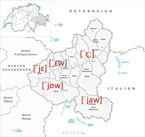 5. ^ Ritter, Ada (1981). Historische Lautlehre der ausgestorbenen romanischen Mundart von Samnaun (Schweiz, Kanton Graubünden) [Historical phonology of the extinct Romansh dialect of Samnaun (Switzerland, Graubünden canton)] (in German). Gerbrunn bei Würzburg: Verlag A. Lehmann. p. 25.