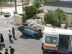 A rollover or overturn is a type of vehicle crash in which a vehicle tips over onto its side or roof. Rollovers have a higher fatality rate than other types of vehicle collisions.[1]