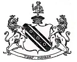 | Supporters | Two lions or, gorged with a fesse cotised ea. charged with three annulets ar. ducally crowned of the last |