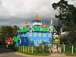 Vyritsa railway station was opened in December 1903. The lands around the station became expensive and were quickly sold for summer houses. Originally, Vyritsa was a suburban settlement and belonged to Tsarskoselsky District of Saint Petersburg Governorate (renamed in 1913 Petrograd Governorate and in 1924 Leningrad Governorate). In the 1910s, the population of Vyritsa was increasing every summer by 10,000 people.[2] On November 20, 1918 the uyezd was renamed Detskoselsky. On February 14, 1923 Detskoselsky and Petergofsky Uyezds were abolished and merged into Gatchinsky Uyezd, with the administrative center located in Gatchina.[10] On February 14, 1923 Gatchina was renamed Trotsk, and Gatchinsky Uyezd was renamed Trotsky Uyezd, after Leon Trotsky.[11]
