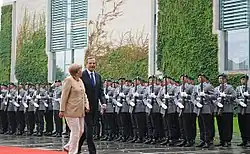 The primary mission of the Wachbataillon is to perform the military honours for the German president, the German Chancellor, the Federal Minister of Defence and the Inspector General of the Bundeswehr during state visits or on comparable occasions.