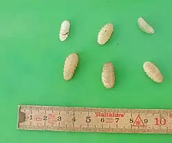 Warble fly is a name given to the genus Hypoderma: large flies which are parasitic on cattle and deer. Other names include "heel flies", "bomb flies" and "gadflies", while their larvae are often called "cattle grubs" or "wolves." Common species of warble fly include Hypoderma bovis (the ox warble fly) and Hypoderma lineatum (the cattle warble fly) and Hypoderma tarandi (the reindeer warble fly). Larvae of Hypoderma species also have been reported in horses, sheep, goats and humans.[1] They have also been found on smaller mammals such as dogs, cats, squirrels, voles and rabbits.