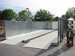 A wash rack is a partly enclosed platform that is used to wash vehicles, heavy equipment, tools, and parts by removing dirt, grime, chemicals, invasive species, and other contaminants with a pressure washer in order to prevent corrosion and promote longer equipment lifespan.[1] Cars, trucks, boats, construction and maintenance equipment, and even aircraft and military vehicles can all be cleaned in a wash rack. Wash racks are usually mobile and constructed from steel, although plastic wash racks exist as well as concrete formed alternatives which are sometimes installed in permanent facilities.