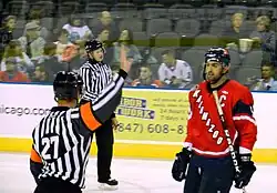 O'Neill speaking with a referee following a penalty while with the K-Wings