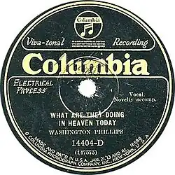 - 1928 – Washington Phillips,[5][6][7] 78rpm single Columbia 14404-D