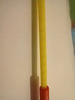 Whistle Pops (called Melody Pops in some countries) are a lollipop brand formerly produced by Spangler Candy Company,[2] now produced by Chupa Chups, starting in the 1970s that are designed to make a whistling sound.[3] They are produced with a hole in them, and when blown into, a whistling sound emanates from the confectionery.[3]