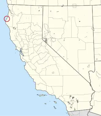 The Wiyot Tribe's land base includes two Reservations. Table Bluff Reservation and the Old Table Bluff Reservation are located 16 miles southwest of Eureka, California.[8] The new Table Bluff Reservation is 88-acres.[6] The Old Table Bluff Reservation was established in 1908, when a church donated 20 acres of land to the Wiyot Tribe. The land was allotted to individuals. The Reservation was formally recognized by the government in 1981 and 102 acres was purchased for the tribe.[5] The Reservation is located on Table Bluff in Humboldt County, California. It lies at an elevation of 236 feet (72 m).[9] The land is also known as the "Old Reservation" for the Wiyot.[10] As of the 2010 Census the population was 103.[11]
