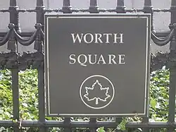 Worth Square, or General Worth Square, is a public square in Manhattan located at East 25th Street between Broadway and Fifth Avenue directly west of Madison Square Park. The location was designated as a public park in 1847, and since 1857 the square has served as both a memorial to and the burial site of William Jenkins Worth.[1] The only other New York City monument that doubles as a mausoleum is Grants Tomb in Harlem. The 0.27 acre square is one of the many Triangle/Plazas administered by the New York City Department of Parks and Recreation.[1]